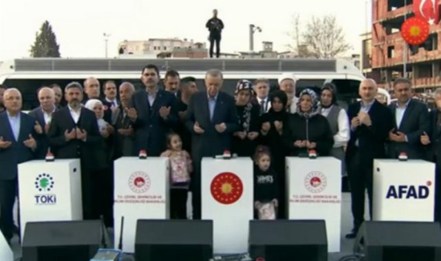 Adıyaman'da yeni afet konutları temel atma törenine katılan Cumhurbaşkanı Erdoğan, "Her bir vatandaşımızı yeni yuvasına kavuşturacağız. Deprem bölgesinde toplamda 650 bin olmak üzere ilk bir yılda 319 bin konut ve köy evi inşa edeceğiz" ifadelerini kullandı.