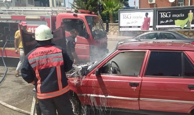 Adıyaman'da aracın motorundan çıkan yangınla seyir halindeki otomobil kullanılmaz hale geldi.