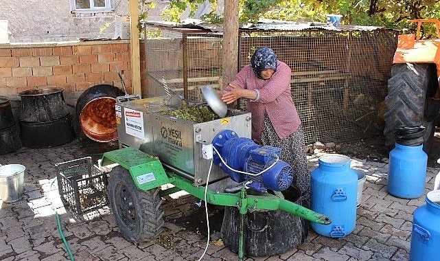 Eskiden günlerce uğraş verilerek, bin bir emekle gerçekleştirilen üzüm sıkma işlemi, saatte 1 ton sıkma kapasiteli üzüm sıkma makinesiyle hijyenik bir şekilde kısa sürede tamamlanıyor. Salkım halinde makineye atılan üzümlerin kısa sürede suyu çıkıyor. Üzüm şırası ardından kaynatılarak pekmeze dönüştürülüyor. Tarımsal Hizmetler Dairesi Başkanlığı Kırsal Kalkınma ve Kooperatifçilik Şube Müdürlüğü tarafından Elmalı Yalnızdam Mahallesi’ne gönderilen üzüm sıkma makinesi vatandaşlardan tam not aldı.