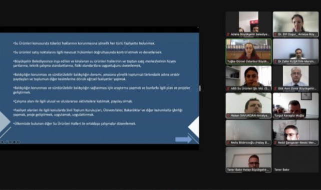 Antalya Büyükşehir Belediyesi Tarımsal Hizmetler Dairesi Başkanlığı Su Ürünleri Şube Müdürlüğü tarafından Yerel Yönetimler Balıkçılık ve Su Ürünleri Çalıştayı düzenlendi.ANTALYA (İGFA) - Çevrimiçi düzenlenen çalıştaya İstanbul, İzmir, Adana, Mersin, Hatay, Aydın, Muğla Büyükşehir Belediyeleri ile Edirne Belediyesi'nde görevli uzmanlar katıldı. Çalıştayda, kıyı belediyeleri ile birlikte uzun vadeli, sürdürülebilir bir balıkçılık ve deniz yönetimi stratejisi hazırlanması planlandı.Fikir Birliğine VarıldıDeniz yönetimi stratejisinin başarıyla uygulanabilmesi için denizel tür popülasyonlarının bilinmesi, izlenmesi, habitatların iyileştirilmesi, ülkemizin 30x30 hedeflerine uygun olarak deniz koruma alanları oluşturulması, geleneksel balıkçılığın desteklenmesi, toplumun sağlıklı denizel protein kaynaklarına ulaşımının desteklenmesi, deniz okur-yazarlığının geliştirilmesinin büyük önem arz ettiği konusunda fikir birliğine varıldı.Belediyeler Çalışmalarını AnlattıÇalıştayda İstanbul ve İzmir Büyükşehir Belediyeleri bünyelerinde faaliyet gösteren balık halleri ve balıkçılık destekleri hakkında detaylı bilgiler aktardı. Mersin Büyükşehir Belediyesi yapay resiflerle ilgili tecrübelerini ve Aydın Büyükşehir Belediyesi de su bitkileri ile mücadeledeki yenilikçi yöntemlerini paylaştı. Antalya Büyükşehir Belediyesi Tarımsal Hizmetler Dairesi Başkanlığı'na bağlı olarak yeni kurulan Su Ürünleri Şube Müdürlüğü bünyesindeki "Antalya Deniz Biyolojisi Müzesi"nin "Deniz Bilimleri Eğitim ve Araştırma Merkezi" olarak çalışmalarına devam edeceği belirtildi. Çalıştayda ayrıca TBMM kararıyla oluşturulan "Balıkçılık ve Su Ürünleri Sektöründe Yaşanan Sorunların Araştırılarak Alınması Gereken Tedbirlerin Belirlenmesi" hakkında oluşturulan Meclis Araştırması Komisyonunun çalışmaları da gündeme geldi.