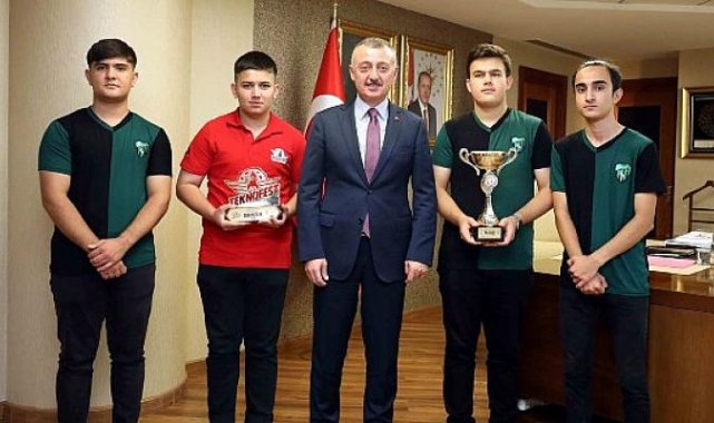 Başkan Büyükakın, robot yarışmalarında dereceye öğrenci ve öğretmenlerini makamında konuk etti