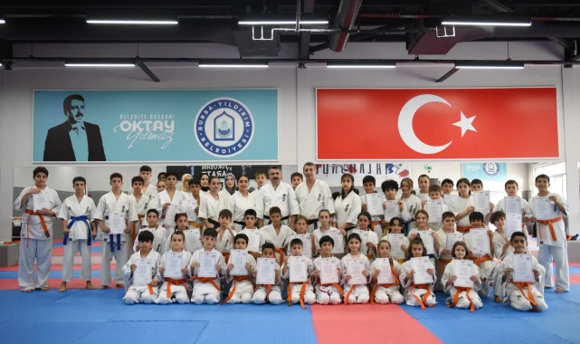 Yıldırım Belediyesi’nin karate kurslarında eğitim gören 70 sporcu düzenlenen sınav sonucu kuşak yükseltti. Genç sporculara sertifikalarını takdim edip kuşaklarını bağlayan Yıldırım Belediye Başkanı Oktay Yılmaz, Spor Kenti Yıldırım’da yeni başarılara imza atacak gençlere desteğin tam olduğunu ifade etti.