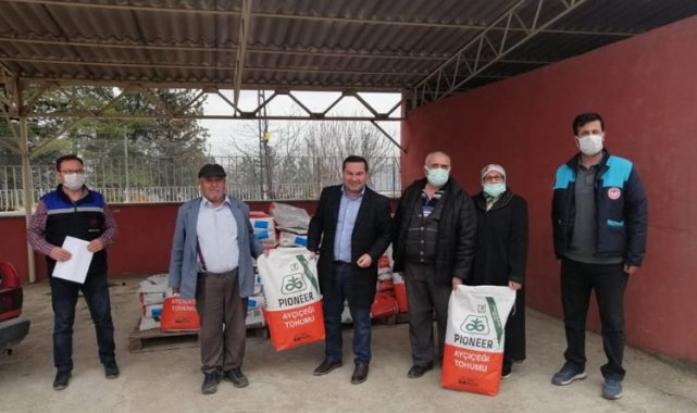 Bilecik'in Pazaryeri ilçesinde 106 çiftçiye 1,5 ton yağlık ayçiçeği tohumu dağıtıldı.Pazaryeri Gündem (BİLECİK İGFA)-Pazaryeri ilçesinde Ayçiçeği Üretimini Geliştirme projesi kapsamında İlçe Tarım ve Orman Müdürlüğü'nde düzenlenen törende, 106 çiftçiye 1.5 ton %60 devlet destekli ayçiçeği tohumu teslim edildi.Tohum teslim törenine katılan Pazaryeri Kaymakamı Ferhat Altay, "'Pazaryeri ilçemizde ayçiçeği üretiminin artırılmasına yönelik Bilecik Valimiz Sayın Dr. Kemal Kızılkaya, öncülüğünde başlatılan "Ayçiçeği Üretimini Geliştirme" projesi kapsamında çiftçilerimize bugün %60 devlet destekli ayçiçeği tohumların teslimini gerçekleştirdik. Çiftçilerimize hayırlı bereketli olsun" diye konuştu.Pazaryeri İlçe Tarım ve Orman Müdürü Serdar Sert, ise, "Pazaryeri ilçemizde ayçiçeği üretiminin artırılmasına yönelik çalışmalarımız devam etmektedir. Ayçiçeğinin pazarlama sorununun olmaması gibi önemli avantajlar sebebiyle, ilçemizde atıl durumda bulunan ve kullanılmayan tarım arazilerinin, ayçiçeği ekilerek üretime kazandırılması ve üreticilerimizin de gelirlerinin arttırılmasına yönelik çalışmalarımız devam ediyor. Biz her zaman onların yanındayız, her zaman destekçileriyiz. Her zaman çiftçinin, toprağın, üreticinin, üretimin yanındayız. Onların emeğine saygı gösteriyoruz" dedi.