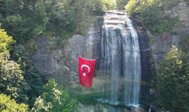 Bursa'nın Mustafakemalpaşa İlçesi'nin kurtuluşunun 100.yılında dağcılar tarafından 38 metre yüksekliğe sahip Suuçtu Şelalesi'nden 100 metrekarelik dev Türk Bayrağı açıldı.BURSA (İGFA) - Bursa'nın Mustafakemalpaşa ilçesindeki doğa harikası Suuçtu Şelalesi, Mustafakemalpaşa'nın 100.kurtuluş yıl döneminde 100 metrelik dev Türk Bayrağı ile güzelliğine güzellik kattı.Mustafakemalpaşa Dağcılık ve Doğa Sporları Kulübü Başkanı İbrahim Kanburoğlu ve Turgut Ünal'a 100. Kurtuluş yıl dönümünde 100 m2'lik Türk bayraklarını astıkları için özellikle teşekkür eden Mustafakemalpaşa Belediye Başkanı Mehmet Kanar, Mustafakemalpaşa ve Türkiye'yi düşman işgalinden kurtaran Gazi Mustafa Kemal Atatürk ve tüm şehitleri rahmet, minnet ve saygı andı.Belediye Başkanı Mehmet Kanar, Suuçtu Şelalesi'ne 100 metrekare Türk Bayrağı'nı işleyen hem İbrahim Bey, hem Turgut Bey'in vesile olmasına teşekkür ederek, ilçenin 100. Kuruluş yıldönümünü kutladı.Mustafakemalpaşa Dağcılık ve Doğa Sporları Kulübü Başkanı İbrahim Kanburoğlu ve Turgut Ünal, ilçenin düşman işgalinden kurtuluşunun 100. yılında Türk Bayrağı'nı Suuçtu Şelalesi'nde açtıkları için gururlu olduklarını belirterek, "100. Yılda 100 metrekare bayrakla bu anlamlı günü taçlandırmış olduk. Daha nice 100 yıllara" dedi.