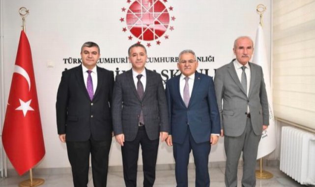 Kayseri Büyükşehir Belediye Başkanı Dr. Memduh Büyükkılıç, Cumhurbaşkanı Recep Tayyip Erdoğan'ın imzasıyla yayımlanan atama kararına göre Cumhurbaşkanlığı İletişim Başkanlığı Kayseri Bölge Müdürü olarak atanan Yahya Tekin'e 'hayırlı olsun' ziyaretinde bulundu.Başkan Büyükkılıç'a ziyarette, Büyükşehir Belediyesi Genel Sekreter Yardımcısı Serdar Öztürk, Basın Yayın ve Halkla İlişkiler Daire Başkanı İbrahim Özçekiç ile Cumhurbaşkanlığı İletişim Başkanlığı Kayseri Şube Müdürü Ahmet Engür de eşlik etti.Sıcak ve samimi ortamda geçen ziyarette, Büyükkılıç ile Tekin fikir alışverişinde bulundu.Tekin'e yeni görevinde başarılar ve kolaylıklar dileyen Başkan Büyükkılıç, "Cumhurbaşkanlığı İletişim Başkanlığı Kayseri Bölge Müdürlüğü'nü ziyaret ederek, Bölge Müdürümüz Yahya Tekin ve kıymetli iletişim personelimize kolaylıklar dileyip, hasbihal ettik" dedi.