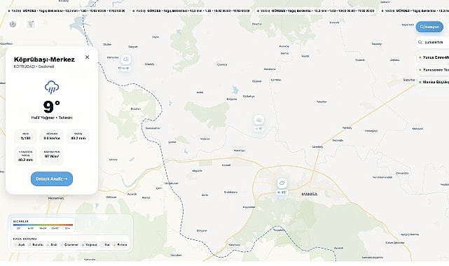 Manisa Büyükşehir Belediyesi, başta tarım üreticileri olmak üzere tüm vatandaşların hava koşullarına karşı daha hazırlıklı olmasını sağlamak amacıyla ‘Hava Olayları Erken Uyarı ve Bölgesel Bilgi Sistemi’ni devreye aldı. İl genelindeki meteorolojik verileri tek merkezde toplayan sistem, anlık riskleri ve bölgesel hava durumunu sade ve anlaşılır bir ekran üzerinden kullanıcılarla buluşturuyor.