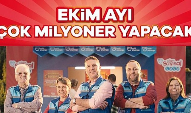 Sisal Şans tarafından gerçekleştirilen Çılgın Sayısal Loto’da Ekim ayı boyunca yapılacak çekilişler oyun severlerin şansına şans katacak ve her çekiliş garanti, ekstra 5 milyon TL ikramiye kazandıracak. “Milyonerler Ekimi” boyunca, 1 – 31 Ekim tarihleri arasında yapılacak 14 Çılgın Sayısal Loto çekilişinde, oyun severlere ekstra 70 milyon TL’lik ikramiye dağıtılacak. Çılgın Sayısal Loto’da “Milyonerler Ekimi” oyun severleri bekliyor. Sisal Şans tarafından gerçekleştirilen Çılgın Sayısal Loto, 1-31 Ekim tarihleri arasında yapılacak her çekilişte ekstra 5 milyon TL verecek. Bir ayın sonunda ise “Milyonerler Ekimi” oyun severlere toplamda 70 milyon TL ekstra ikramiye kazandırmış olacak.