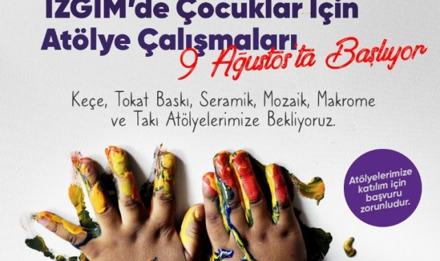 Kocaeli'nin İzmit Belediyesi Kadın Girişimciler Merkezi'nde (İZGİM) çocuklar için atölye çalışmaları 9 Ağustos'ta başlayacakKOCAELİ (İGFA) - İzmit Belediyesi Kadın ve Aile Hizmetleri Müdürlüğü bünyesinde faaliyetlerini sürdüren İZGİM, atölyelerini çocuklara açıyor. Mum, sabun, tokat baskı, mozaik, seramik, çini, hediyelik eşya, makrome, deri, takı tasarım, keçe atölyelerinde kadınlara ürettikleri ürünleri tanıtım ve pazarlama imkanı sunan İZGİM, çocukların da bu atölyeleri tanımasını sağlayacak.EL BECERİSİ KAZANACAKLARKeçe, tokat baskı, seramik, mozaik, makrome ve takı atölyelerine katılacak olan ilkokul ve ortaokul öğrencileri hem el becerisi kazanacak hem de sosyalleşecek. 9 Ağustos Salı günü başlayacak olan atölye çalışmaları için başvuru zorunluluğu olup, başvurular https://file.izmit.bel.tr/cocuk-atolyeleri/ adresinden yapılabilecek.