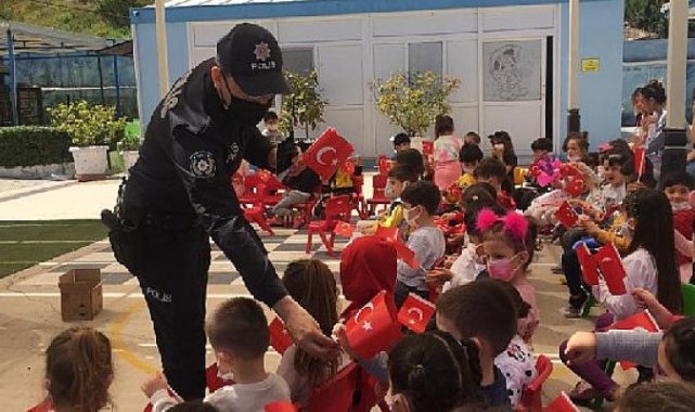 Torbalı Berfin Akçokrak Anaokulu minikleri, Torbalı İlçe Emniyet Müdürlüğü Olay Yeri İnceleme ve Büro Amiri Komiser Sinan Şen ve beraberindeki görevli polis memurlarını okullarında misafir etti. Anaokulu öğrencileri çeşitli etkinliklerle hem eğlenceli vakit geçirdi hem de polis ekibi ile sohbet etme fırsatı buldu. Torbalı Zeliha Ömer Genç Kızılay Anaokulu minikleri de Türk Polis Teşkilatının 177 yılı münasebetiyle Torbalı İlçe Emniyet Müdürlüğünde görev yapan polisleri okullarında ağırladı. Okula davet edilen polisler öğrencilere haftanın anlam ve öneminden bahsederek, motorlarıyla gösteriler yaptı. Türk Polis Teşkilatının kuruluşunun 177. Yılında, Polis Haftasının kutlandığı etkinlikler çocukların hafızalarında güzel izler bıraktı. Polislerle sohbet eden öğrenciler keyifli zaman geçirdi.