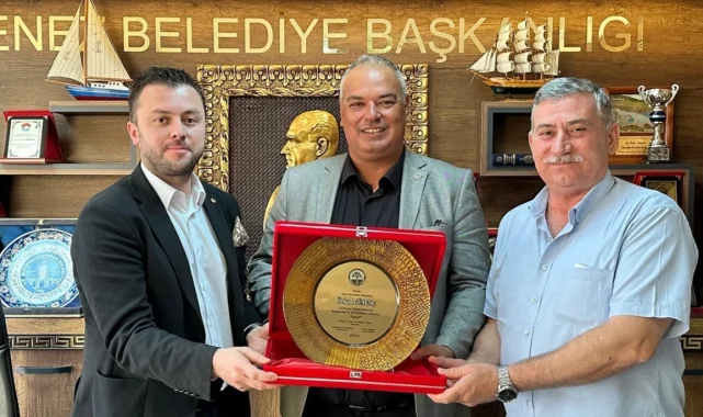 Keşan Ticaret ve Sanayi Odası Meclis Başkanı Ahmet Koru, Yönetim Kurulu Başkanı İsmail Şapçı, Yönetim Kurulu Üyeleri ve Meclis Üyeleri ile birlikte Enez Belediye Başkanı Özkan Günenç'e hayırlı olsun ziyaretinde bulunuldu.Erdoğan DEMİR / EDİRNE (İGFA) - Ziyaret nedeniyle yapılan açıklamada "Keşan TSO Heyeti olarak Enez Belediye Başkanı Özkan Günenç'e yeni dönemde çalışmalarında kolaylıklar ve başarılar diledik. Bölgemiz ticaret, sanayi, tarım ve turizm alanları üzerine istişarelerde bulunduk. Bizleri ağırlayan Enez Belediye Başkanı Özkan Günenç'e misafirperverliklerinden dolayı teşekkür eder, iyi günler dileriz."Ziyarette Şapçı ile Koru, Günenç'e de çalışmalarından dolayı plaket takdim etti.Günenç'te ziyaret nedeniyle Şapçı ve Koru'ya teşekkür etti.