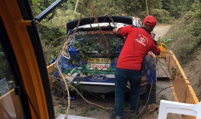 Rallide kaza yapan otomobiller vinçle kurtarıldı