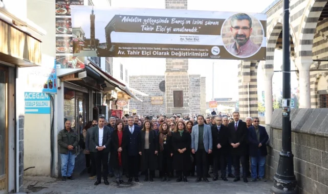 Diyarbakır Büyükşehir Belediyesi, Sur ilçesi Savaş Mahallesi'nde Av. Tahir Elçi Sokağı'nın açılışını gerçekleştirdi.DİYARBAKIR (İGFA) - Diyarbakır Büyükşehir ve Sur Belediyesi'nin ortak kararıyla Savaş Mahallesi'ndeki Yeni Kapı Sokağı'nın bir kısmının ismi değiştirildi. Yeni Kapı Sokağı'nın Dört Ayaklı Minare'ye kadar olan kısmına, 28 Kasım 2015'te Dört Ayaklı Minare'nin önünde uğradığı silahlı saldırı sonucu yaşamını yitiren Diyarbakır Barosu Başkanı Tahir Elçi'nin adı verildi. Av. Tahir Elçi Sokağı için düzenlenen açılış programına, Diyarbakır Büyükşehir Belediyesi yetkilileri, Sur Belediyesi Eş Başkanları Fatma Gulan Önkol ve Adnan Örhan, Tahir Elçi'nin eşi Türkan Elçi, Diyarbakır Barosu Başkanı Abdülkadir Güleç ve meclis üyeleri katıldı.